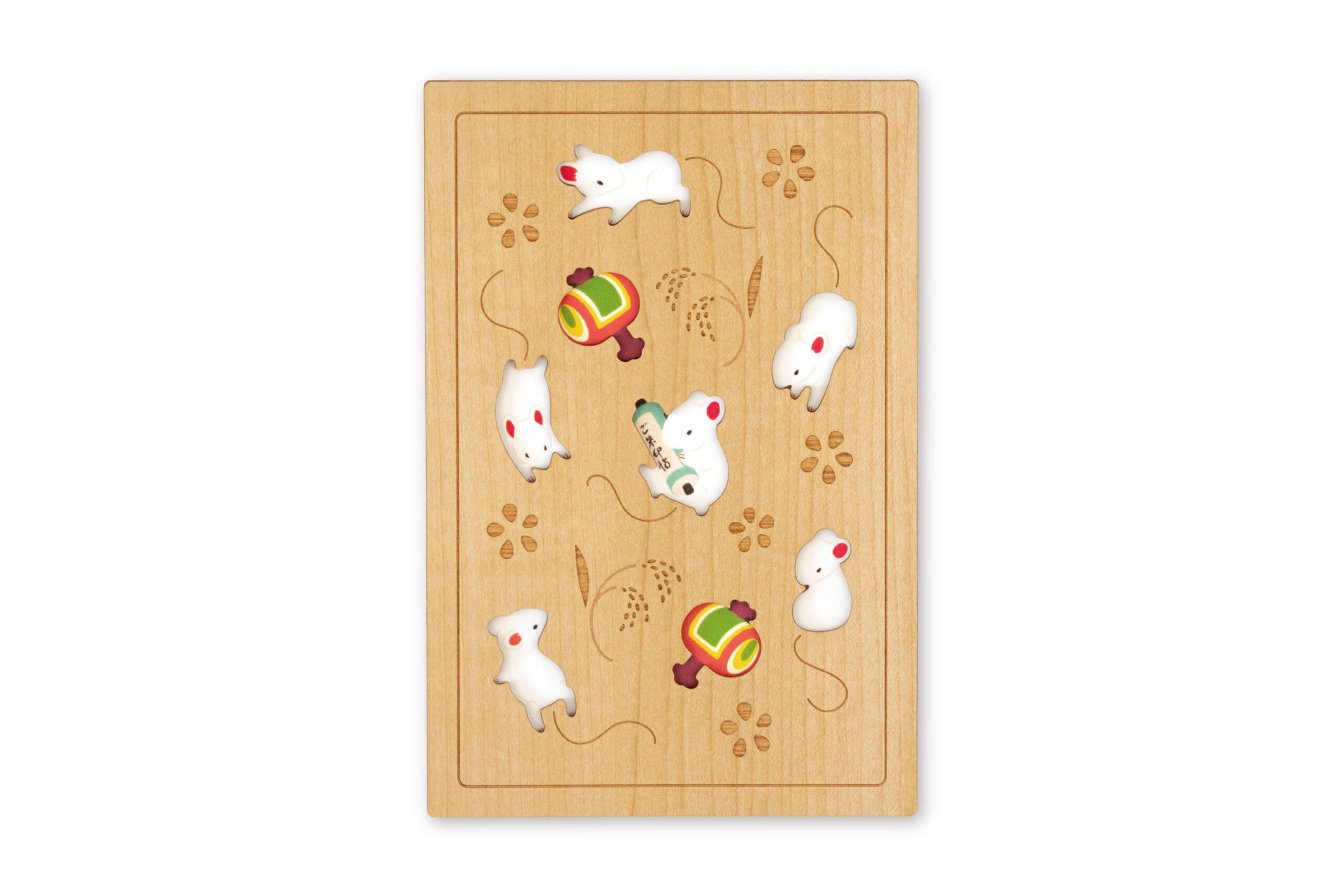 打ち出の小槌を抱えたねずみが幸せを招く縁起の良い一冊。