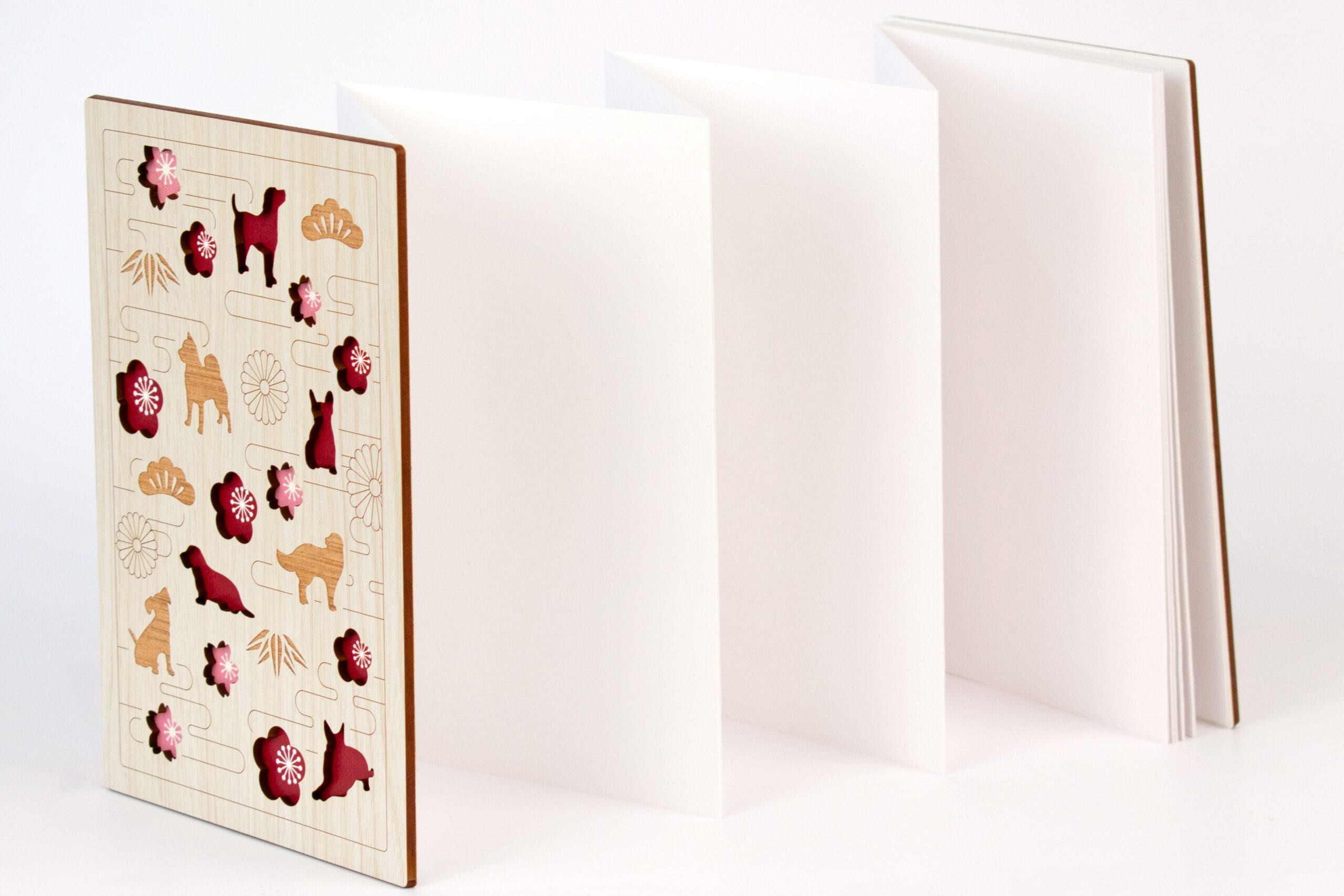 神社やお寺をイメージした木のぬくもりが伝わる御朱印帳。 レーザー加工を施した木素材で表紙を仕立てた永善のオリジナル御朱印帳です。 吉祥文様と犬が福を運ぶ。犬が好きなすべての方に贈る1冊。 ▶ご購入はこちら