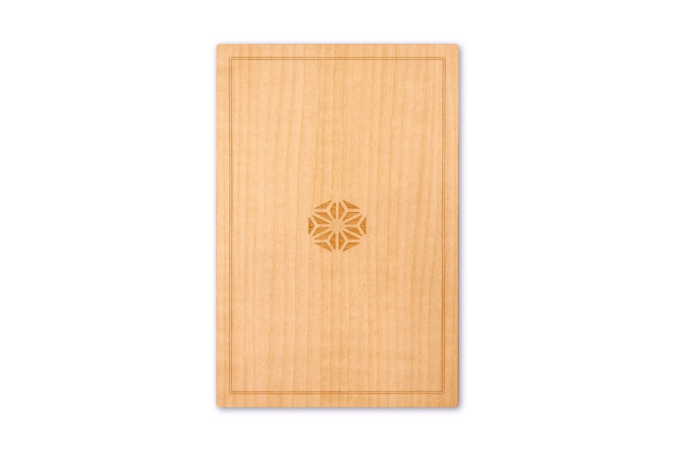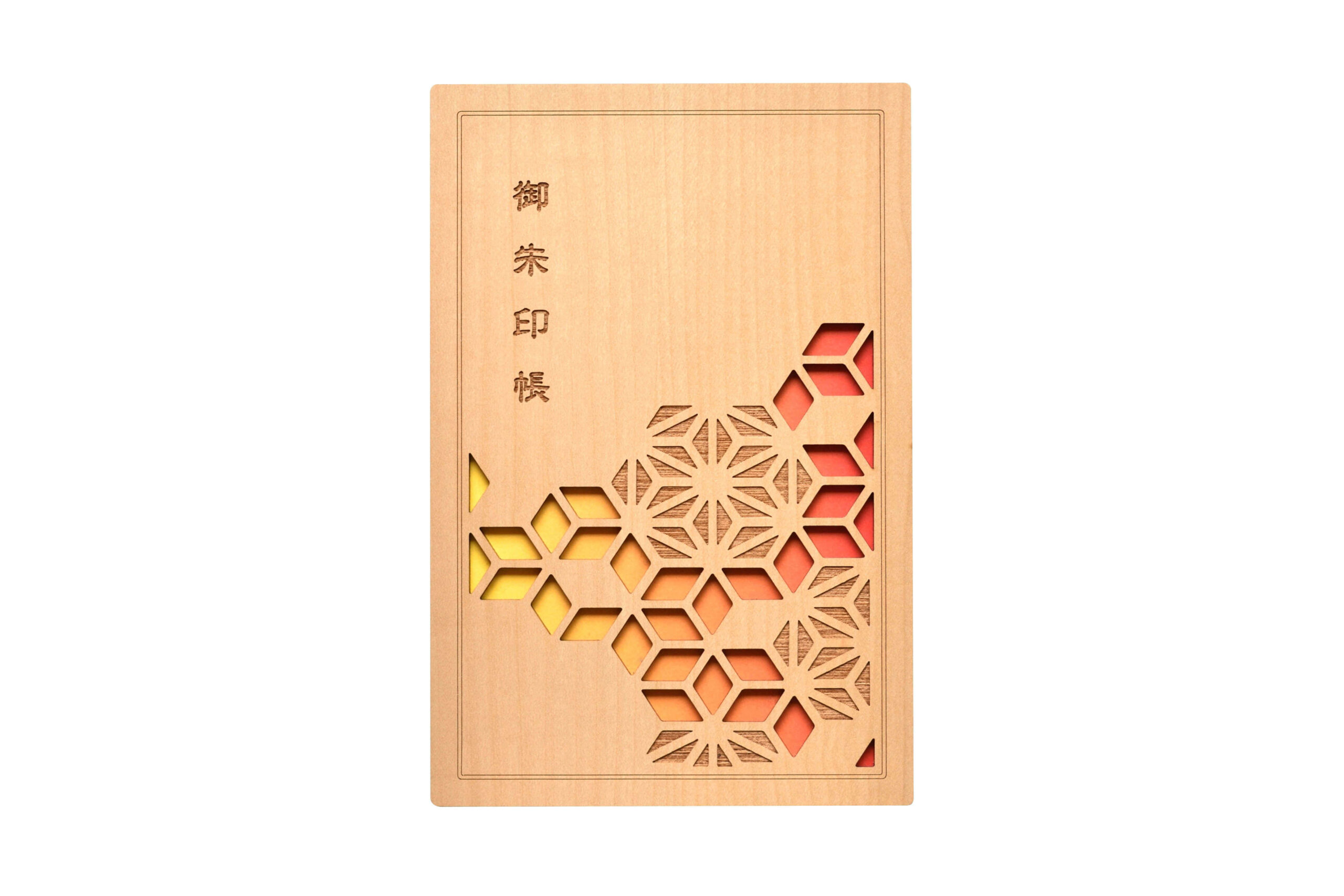 レーザー加工を施した木素材で表紙を仕立てたオリジナル御朱印帳。